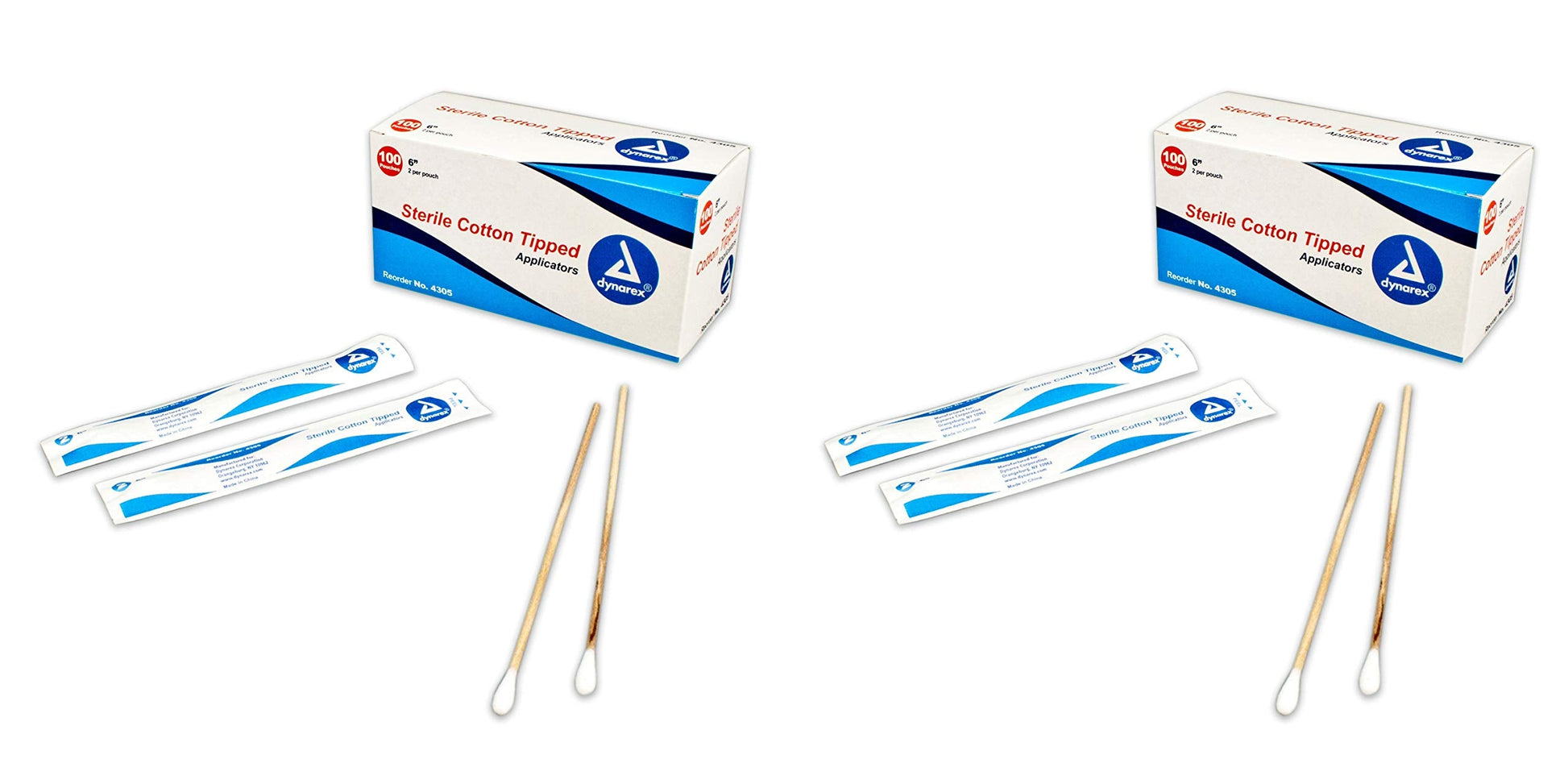 #4305 Cotton Tipped Applicators 6", Sterile, 2 Per Pouch. 100 Pouches/Box (2 Pack) (2 Pack)