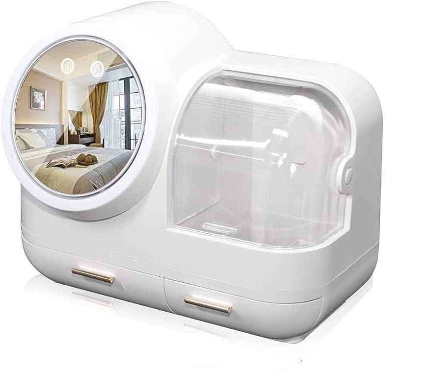 Generic Cosmetic Display Cases Makeup Storage Organizer Box with Mirror Cosmetic Display Case with Touch Screen LED Light Anti Dust and Waterproof Skin Care Organizer White