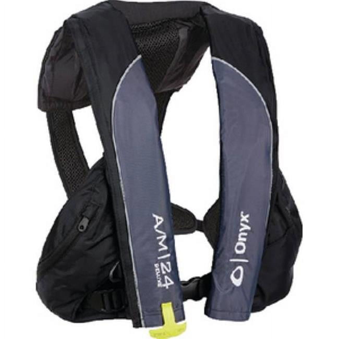 Life Vest; Fits Chest Sizes 30 Inch To 52 Inch; U S Coast Guard Certified; Universal Adult; Nylon; Black; Single; With Adjustable Belt/ Zipper And Gusseted Utility Pockets; Auto/Manual Inflatable PFD; For Paddling Kayak FishingAbsolute Outdoor 0070000423 A/m-24 Deluxe Auto/manual Ipfd